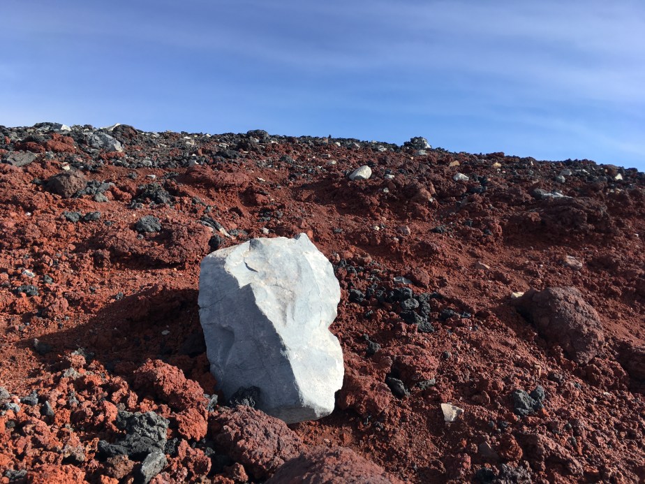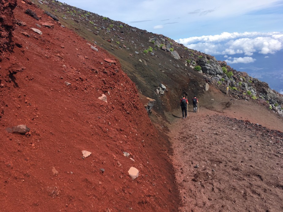 Casey then helped me up (or, rather, down) from my sprawled-out position on the impossible patch, and we both regathered our confidence.  As we laughed heartily, – though not too loudly, due to the fact that our lungs couldn’t handle too much with such altitude – we discussed our mutual thoughts from that dreadful and fear-filled 30-ish seconds we had just experienced.  Casey said that he would contact me in twenty years, and ask if I remembered that time we utterly failed on Fuji-san, and almost had to give up the whole climb, because we tried to climb a dangerous, non-path.