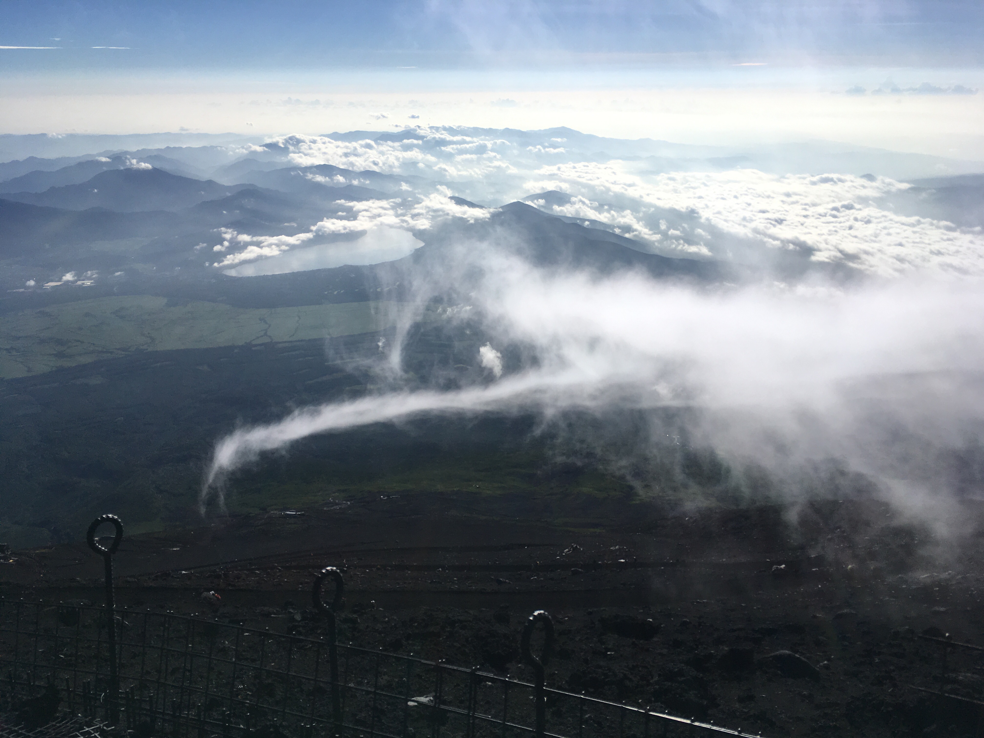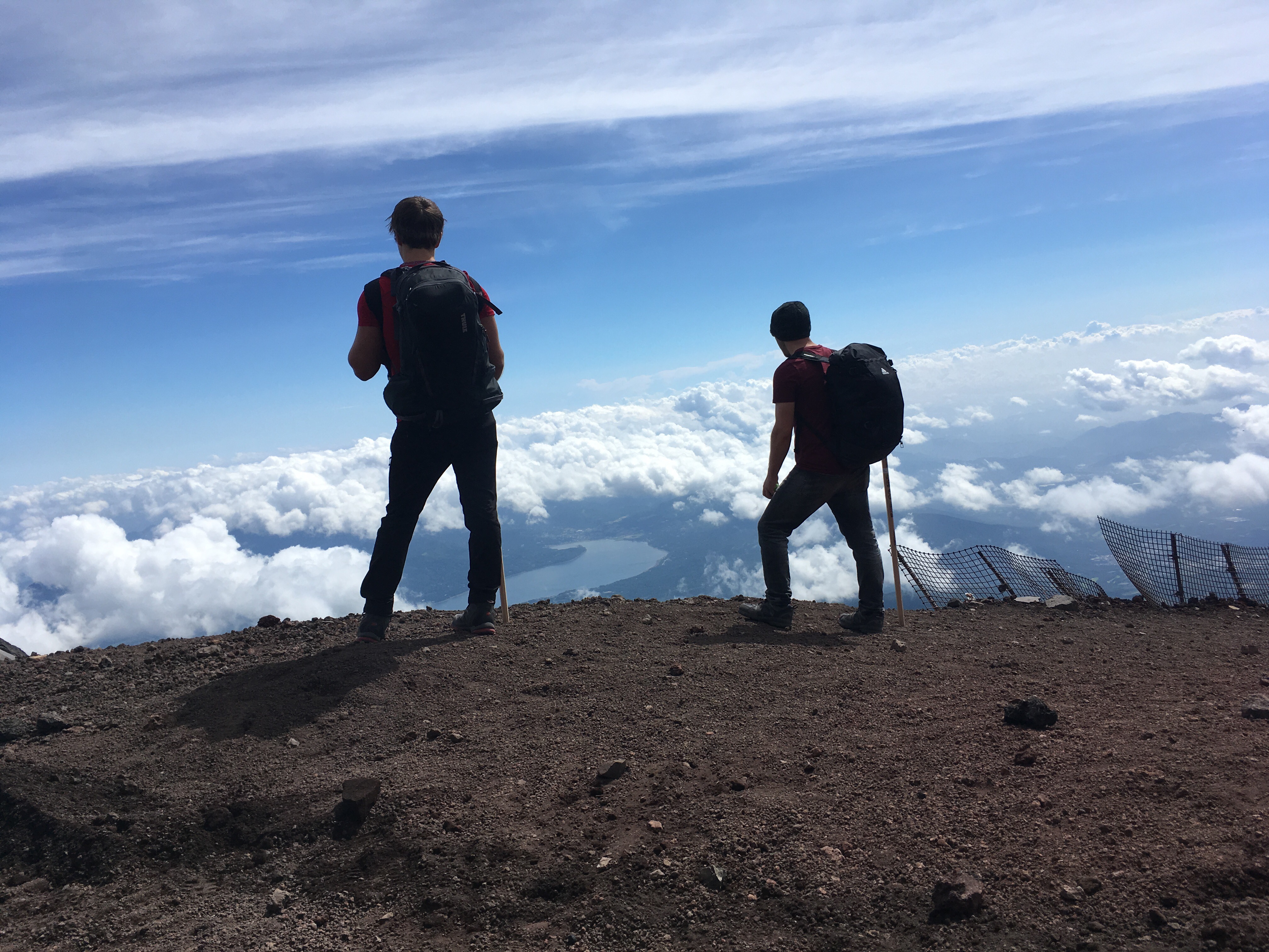 I mentioned Alex before.  Alex is a Canadian from Ottawa whom we met shortly before beginning our hike.  My friend Casey and I were hanging out at the 5th station, waiting for 8pm to arrive and the rains to be finished, and I noticed a guy who seemed to be solo, and who also seemed to be an English-speaker (based on the fact that he clearly understood our conversation).  I started conversation with him, discovered that he was, in fact, solo for the hike, and that he was planning to leave at the same time we were.  It became understood that he could hike with us, if he desired.  And so, he did.  Alex was wonderful company, and was an invaluable helper on the way down from the mountain.  When the announcement that ‘the typhoon is coming sooner than expected, so get off the mountain asap’ occurred, I had not yet rested enough atop the mountain.  My strength was somewhat nonexistent, simply due to a lack of sleep and food and rest (plus the altitude, but the sleep and food were the main parts).  Alex took my backpack for me, and carried it the majority of the way down the mountain (maybe around 2/3 of it) for me.  He was an absolute star.  For that and for more, I am incredibly grateful that we found him and got to hike/climb with him.