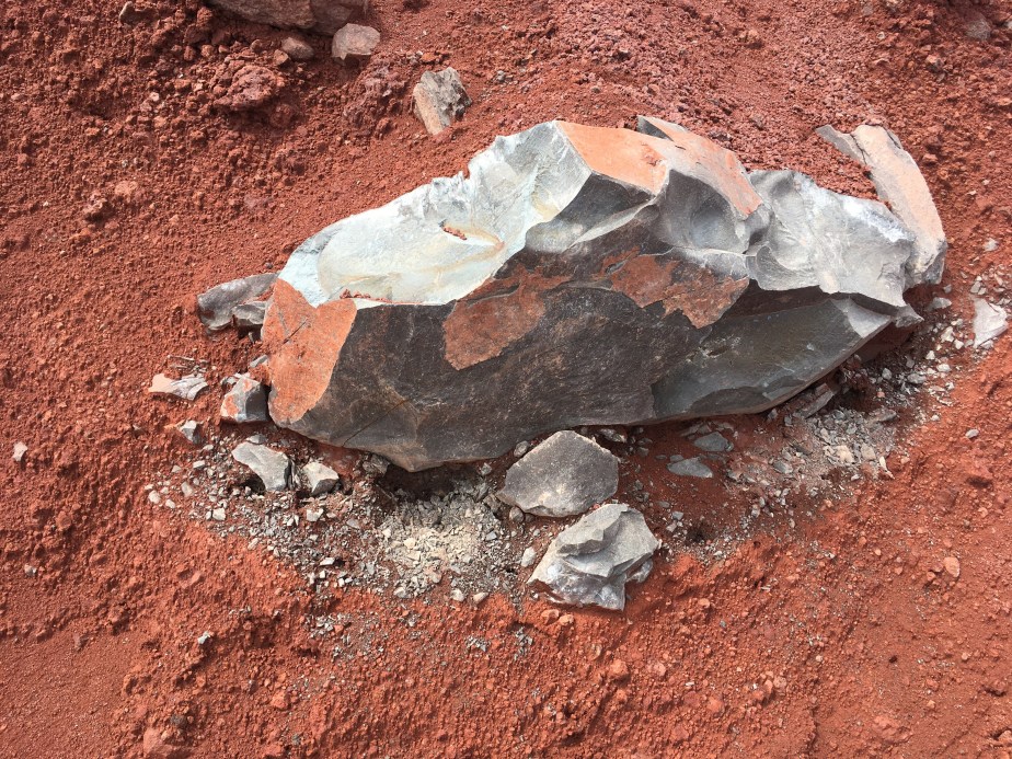 So, we headed down the miserable descent, throughout which we were covered with red and black dirt that felt like it was attacking us in the strong winds.