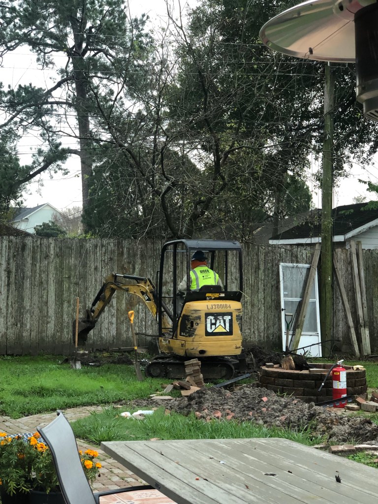 See? The contracted company brought their own machinery to handle the rest of it all. AND they put all of the dirt neatly back on top of the ditch after they replaced all the piping. No extra work for my man or us. Woohoo!