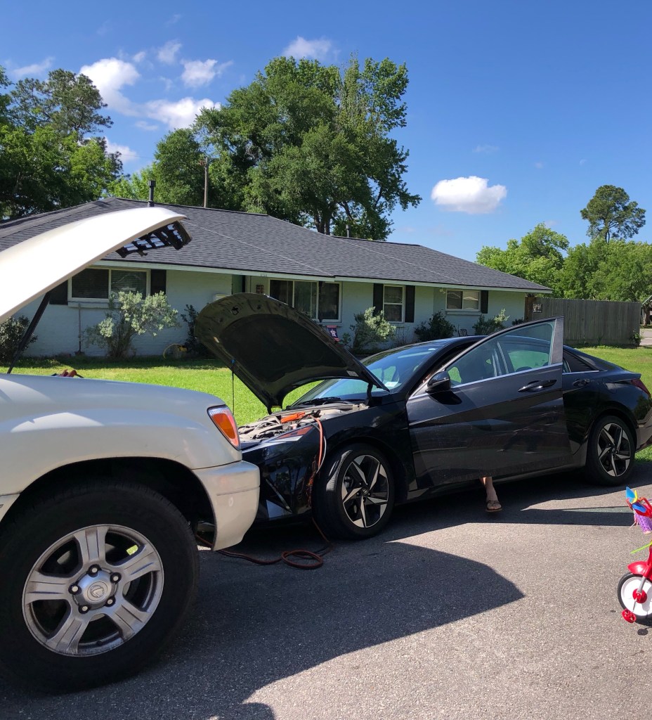 Oh, yes! And we also took a family car ride to the front of the house, so my man could jump start the car my friend was using. She had turned on the car’s headlights while driving yesterday, possibly on accident, and they don’t turn off automatically when the car turns off. I had noticed the lights yesterday, and she had gone and turned them off, but it clearly had been too long already at that time. So, she needed the help this morning, and it turned into a lovely silly affair.