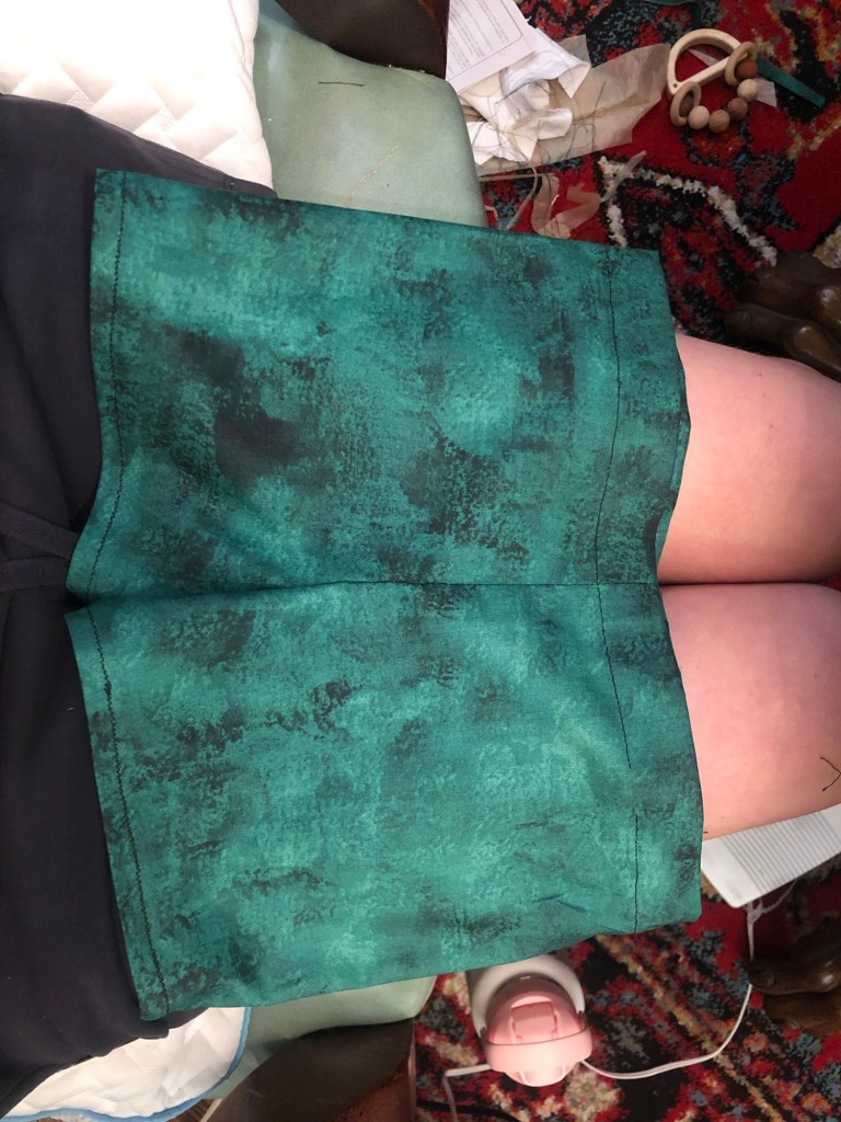 And it took me most of the day to get those done. I think I got the real deal done in maybe an hour or two total, including cutting out the fabric and all. I still have to put in the elastic of the waistband, but I am confident in that part. I had to replaced a similar style of elastic on a dress for my sister at Easter, so I’m mentally prepared for how it works. And I didn’t have the right size elastic, anyway, so I had to get it today, which I did. I’ll see about putting it in tomorrow at some point and truly finishing the shorts! But, for now, they look beautiful to me. They’re meant to be half of a Christmastime outfit for my baby for next year (it’s a toddler pattern, you see).