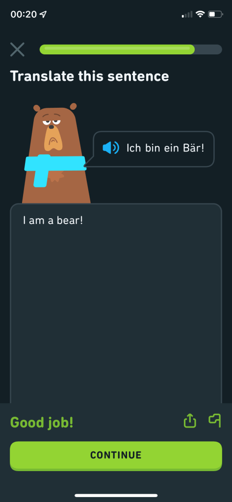 Oh… and Duolingo know it (just like it seems to know everything else all the time about my life… stalkers.).