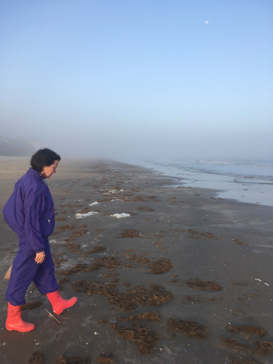 We spent it at the beach, amidst the sand and water and birds and fish and boatloads and boatloads of fog. We made sand mandalas and a labyrinth (and walked it), threw a boomerang-y frisbee, – no, it wasn’t designed to work that way, but it did today! – walked a ton on the beach, ate a lovely Paleo brunch and lovely Paleo cupcakes, opened pen presents, drank yummy teas, played some French Monopoly and some Bop-It Extreme, made sand candles, and had a generally lovely, joyful time just being together. I also played with my jump rope (still haven’t found the right length) and practiced double-unders for a bit, and talked on the phone to a few select people.