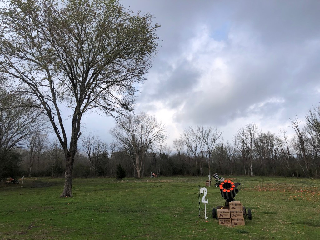 The final gun I shot was a really cool, really light one, and it had much smaller bullets than the 9mm guns had used. I actually really enjoyed shooting that one. The kickback wasn’t so scary, nor was the bang, and it was great. Granted, this one actually burned my finger. However, it was pennies compared to how great and comfortable I felt using it as a whole. Plus, this one was green(!). I shot well with that one, too, but I didn’t have an official target, and so attacked one of the extra backstop signs, the letter O, using it as a target, as well as a small bit of bluebonnets on the sign. It was great. I kind of destroyed them both, really.