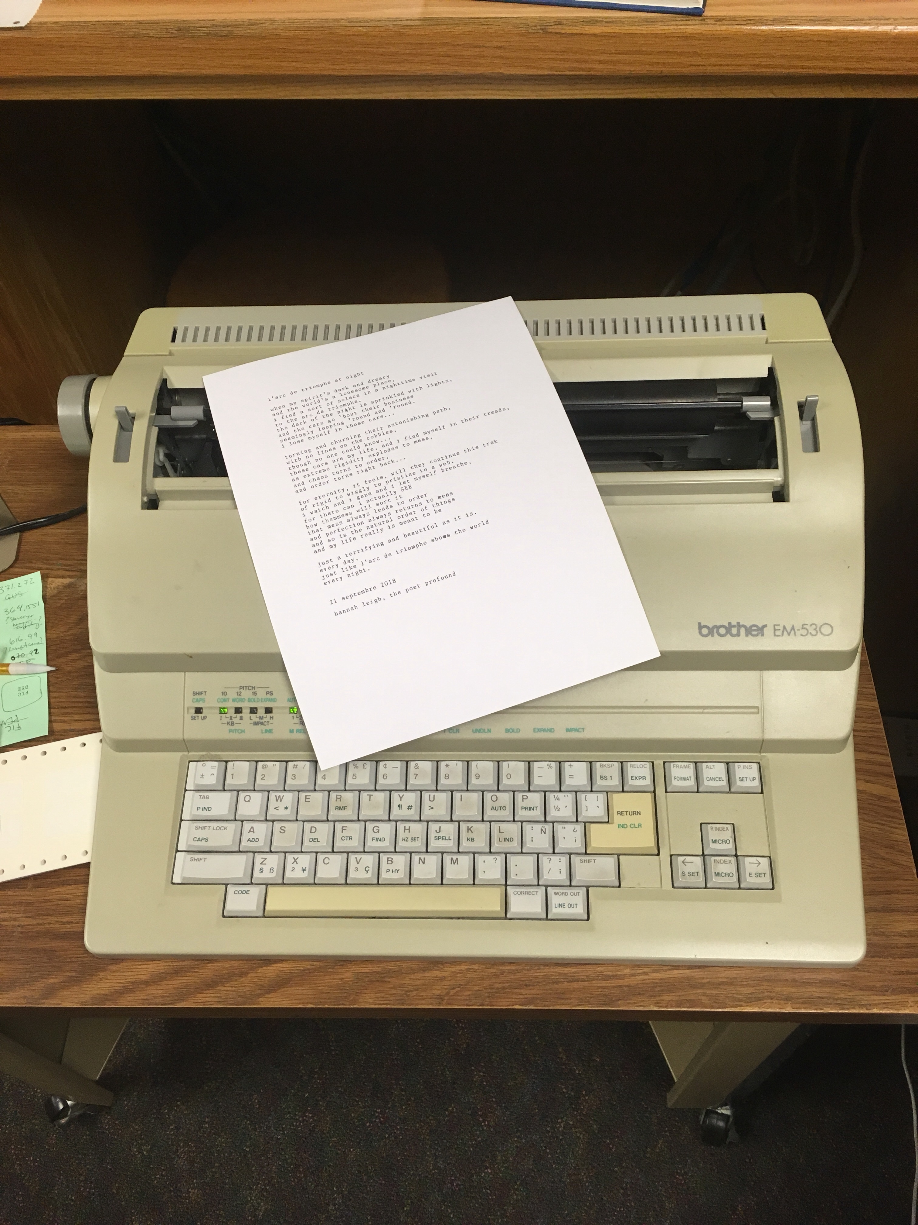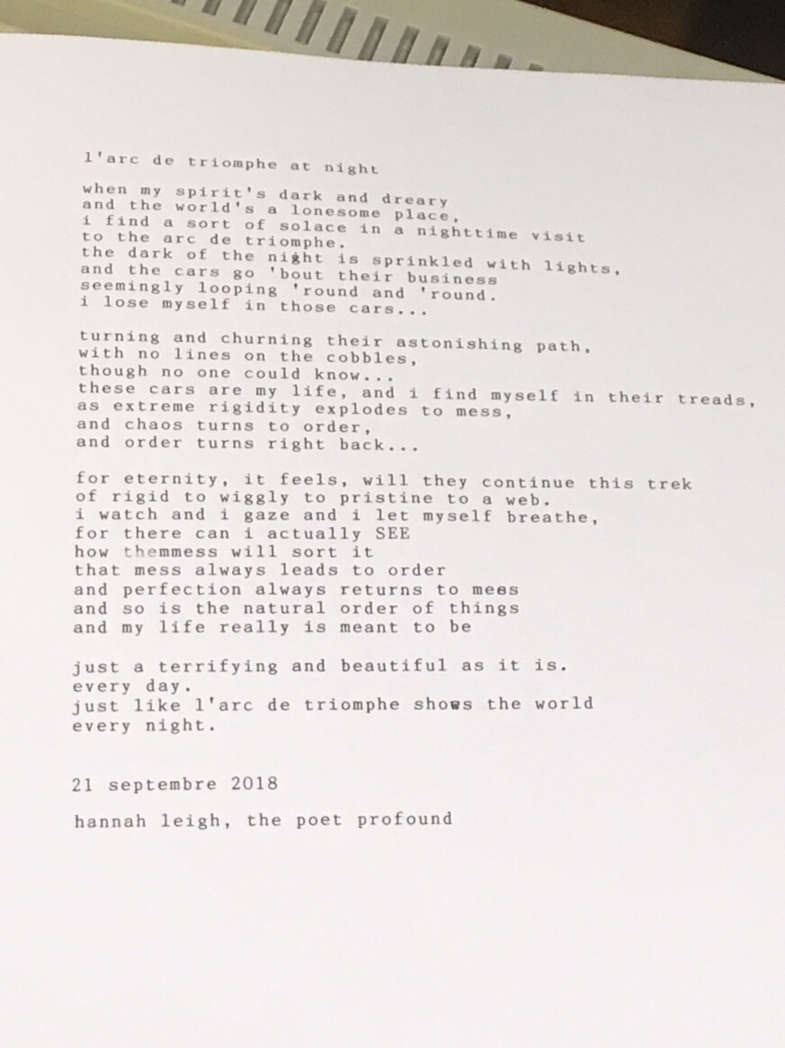 So, find in the following photo the first draft of the poem we discussed today, which I said I would write for my weblog tonight, and which I tapped out on a typewriter(!!!) this afternoon.