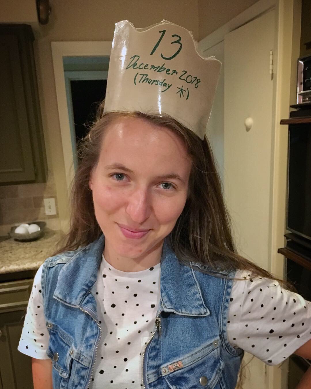 She recommended I put a calendar on my head, and be “an update”…, but 1) a calendar isn’t easy to make stay, 2) I don’t have a paper calendar lying around, and 3) a calendar isn’t a date.