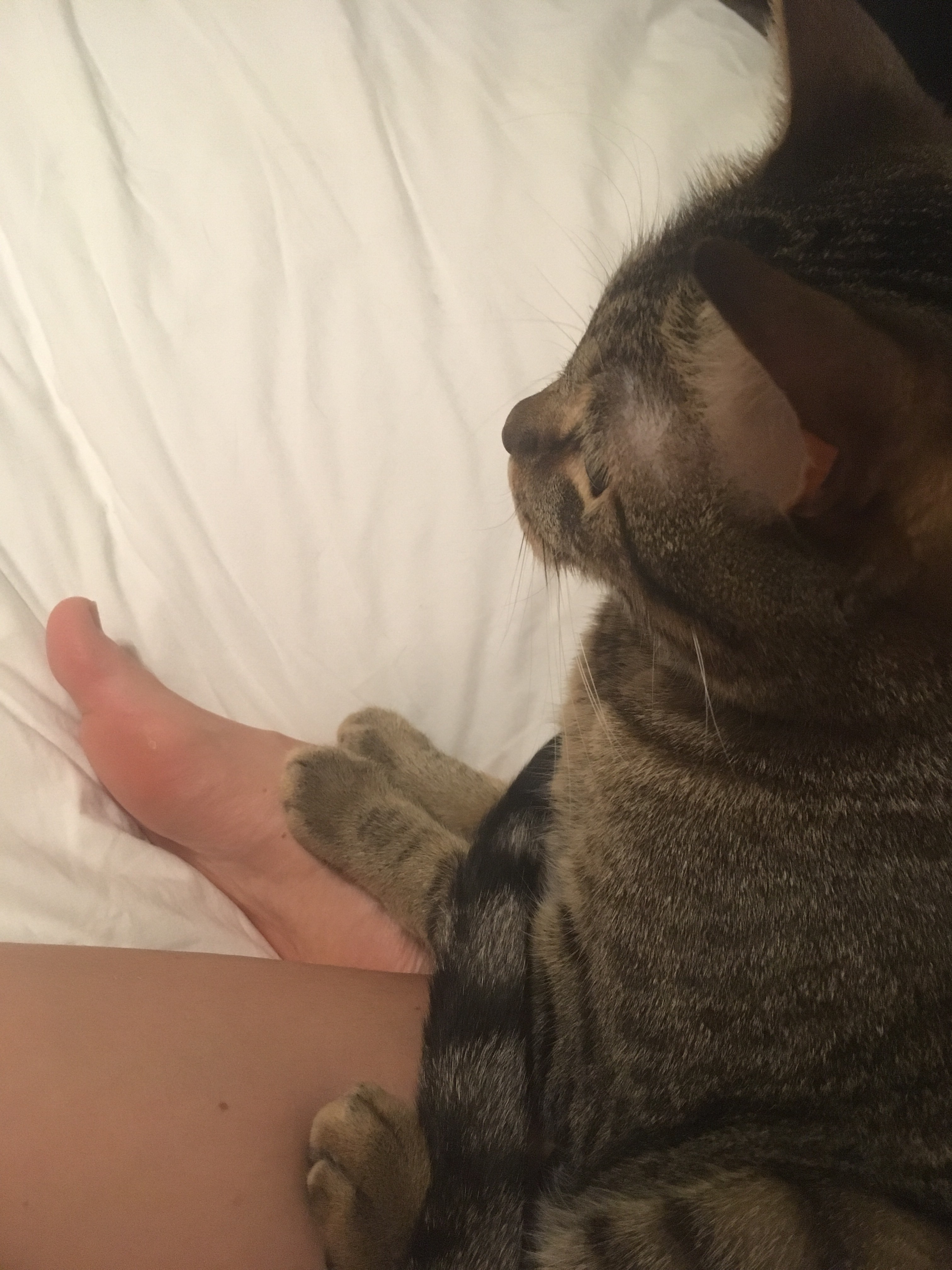Except that, different from every other night, tonight I have my friend’s cat rubbing all over my legs, my face, my arms and head… every chance he gets, he is either rubbing me or snuggling up and lying down on top of me.